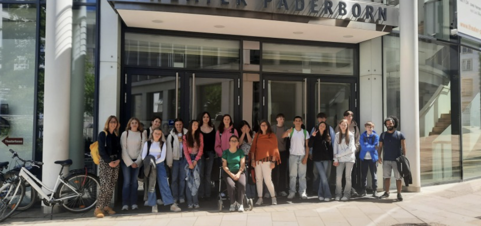 Unser Wahlpflichtkurs „Darstellen und Gestalten“ der Jahrgangsstufe 8 hat sich im März auf ein Kooperationsprojekt mit dem Theater Paderborn als Patenklasse für das Stück „1984 reimagined“, das sich an den Roman von George Orwell anlehnt, beworben und wurden ausgewählt.