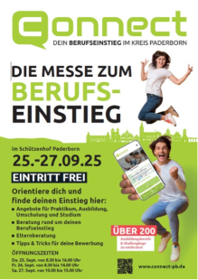 Heute besuchten die Jahrgänge 9, 10 und Q2 (13) unserer Schule die connect Ausbildungsmesse in Paderborn. Die Messe bot unseren Schülerinnen und Schülern die Möglichkeit, sich direkt bei zahlreichen Unternehmen, Institutionen und Hochschulen über Ausbildungs- und Studienmöglichkeiten zu informieren.